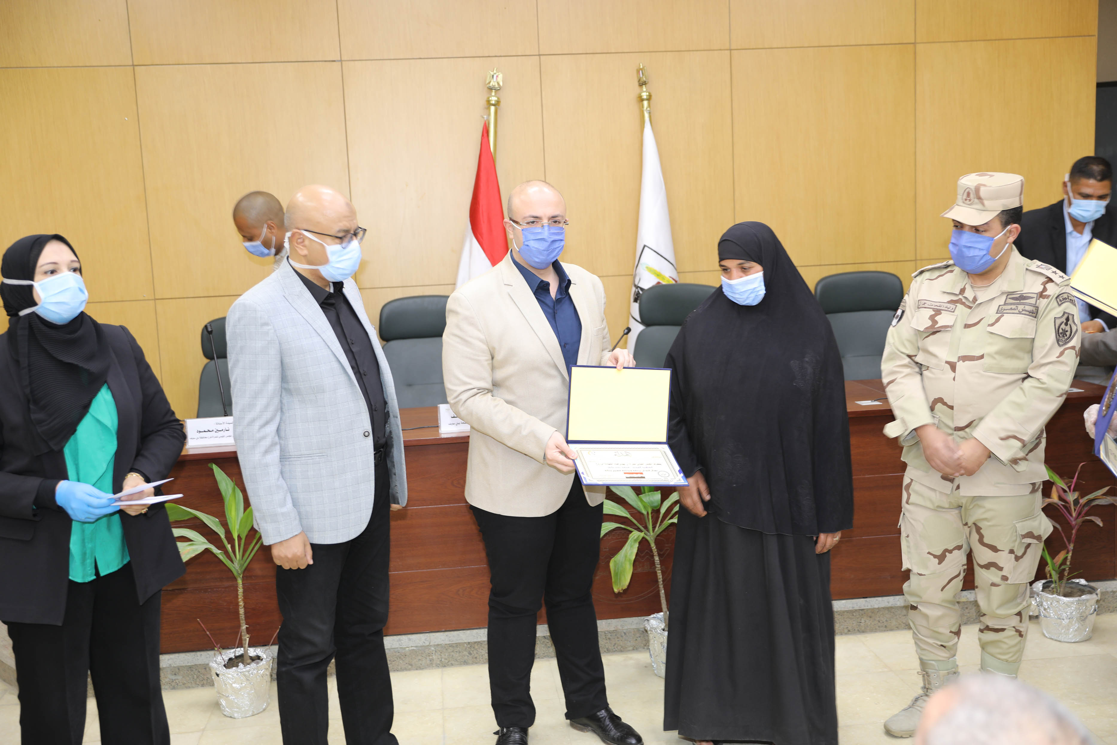 تكريم أسر الشهداء.. و9 ممرضات متعافيات من كورونا ببنى سويف