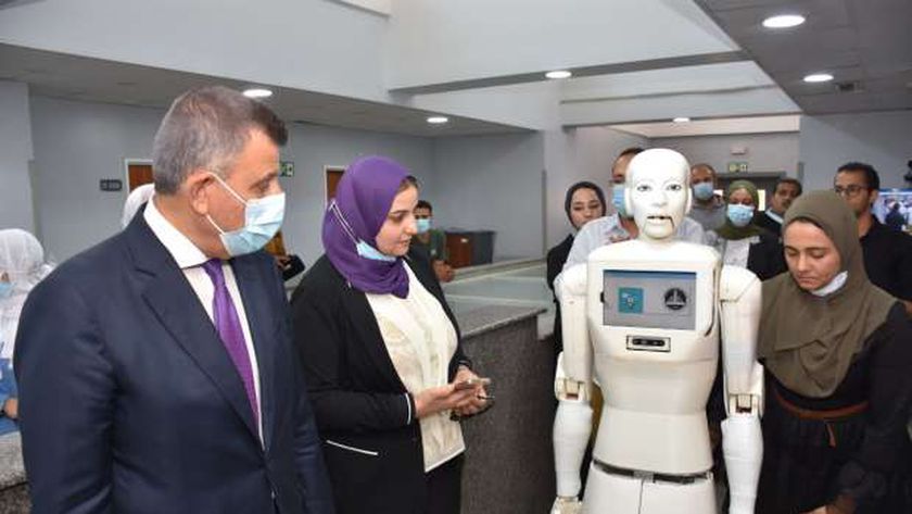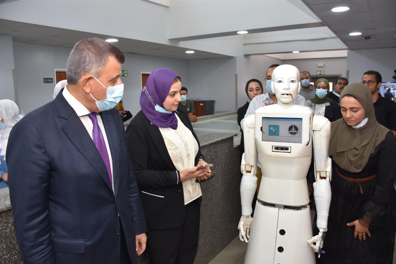 رئيس جامعة عين شمس يختبر أول ممرضة آلية من تنفيذ فريق بحثي بكلية الحاسبات