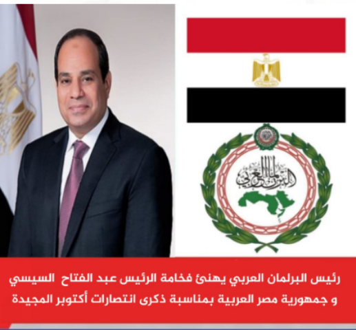 بالفيديو..رئيس البرلمان العربي يهنئ الرئيس السيسي وجمهورية مصر العربية بمناسبة ذكرى انتصارات أكتوبر المجيدة