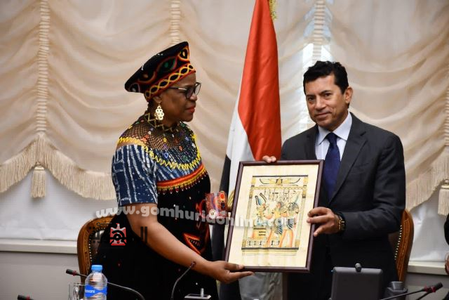 وزير الشباب يهدي منتجات يدوية للأمين العام لمنظمة الكونفجيس