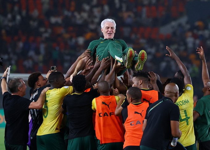 شاهد احتفالات لاعبي منتخب جنوب أفريقيا بعد فوزهم بالمركز الثالث