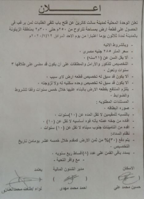 جنوب سيناء تفتح الحصول على أراضى بمنطقة سانت كاترين