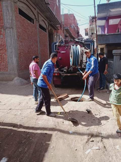 تطهير خطوط وشبكات الصرف الصحي بمنيا القمح