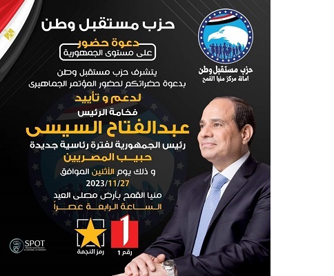 الأثنين .. مؤتمرحاشد لمستقبل وطن دعما للرئيس بمنيا القمح