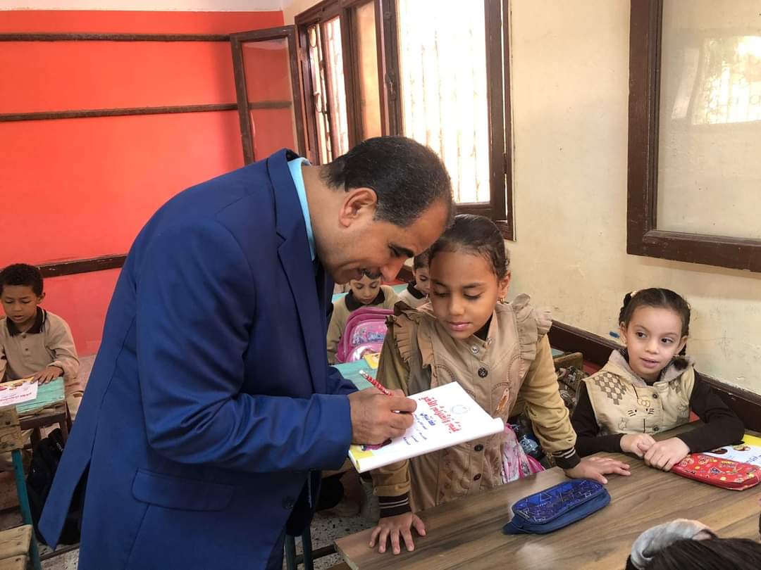 مدير تعليم الخانكة يقيس مهارات القراءة والكتابة للطلاب