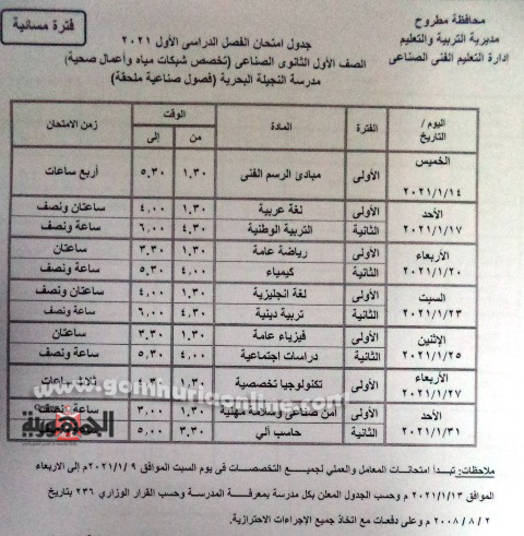 محافظ مطروح يعتمد مواعيد إمتحانات الفصل الدراسى الأول