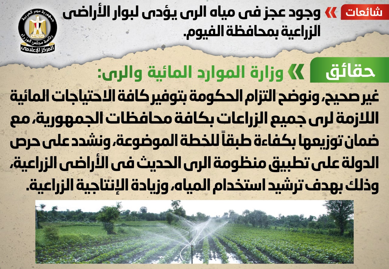 حقيقة امتناع الحكومة عن توفير حصص مياه الري اللازمة للزراعات خلال الموسم الحالي