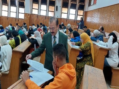 نائب رئيس جامعة بنها"لخدمة المجتمع"يتابع الامتحانات بكلية التربية