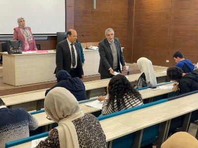 نائب رئيس جامعة بنها تتفقد امتحانات الميدتيرم لطلاب كلية التجارة بالعبور