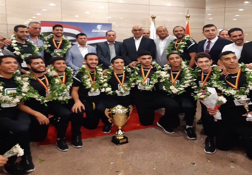 بعثة منتخب ناشئي اليد تصل القاهرة ووزير الشباب والرياضة يستقبلهم في المطار