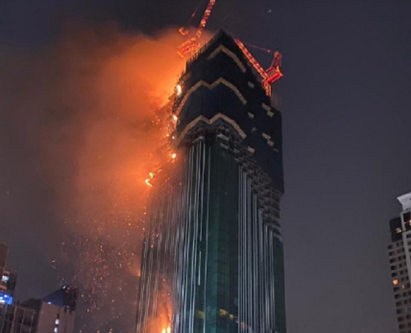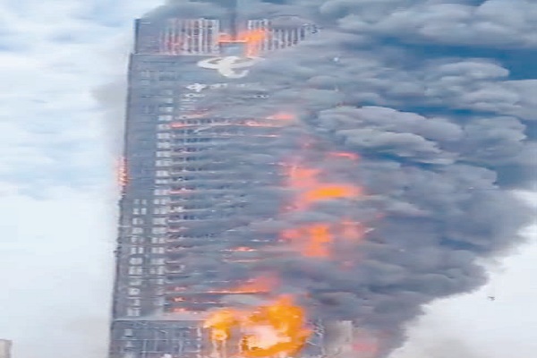 حريق يسبب تفحم ناطحة سحاب .. فيديو