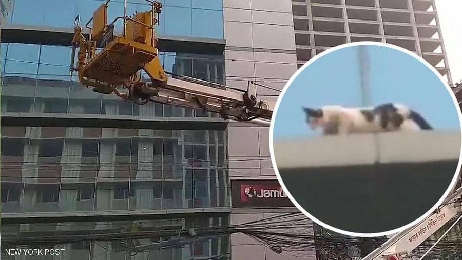 إنقاذ قطة علقت ليومين على ناطحة سحاب.. فيديو