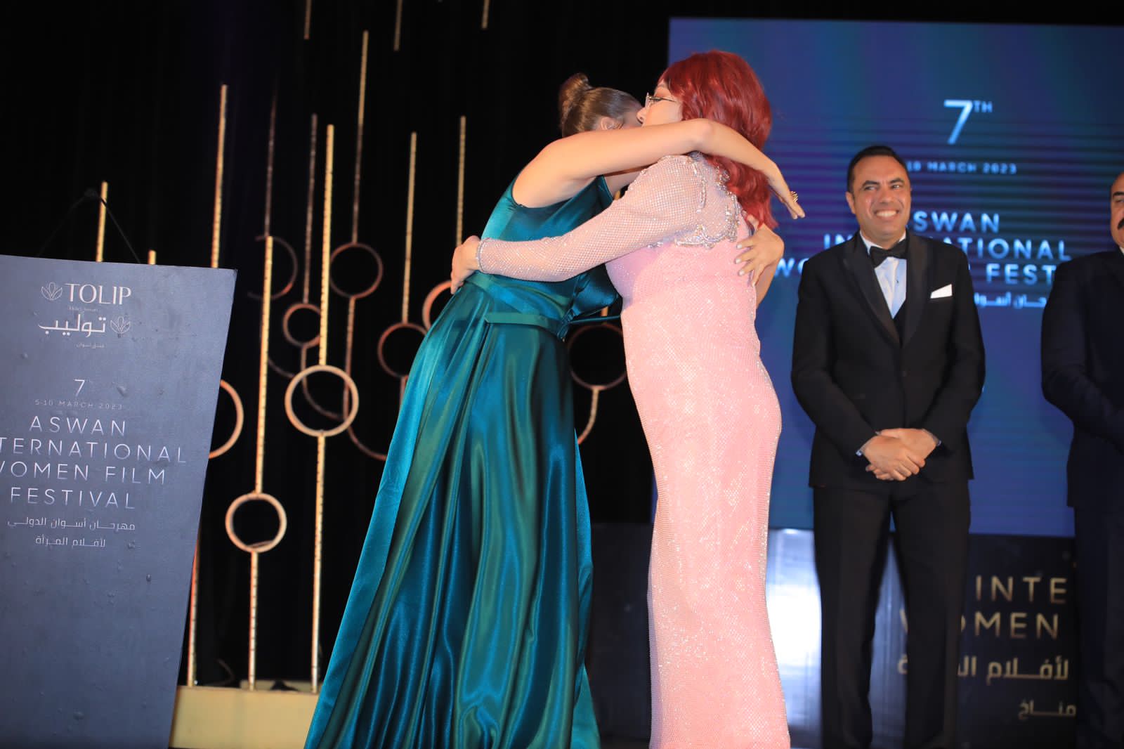 بشرى تسلم نبيلة عبيد درع التكريم بمهرجان أسوان لأفلام المرأة