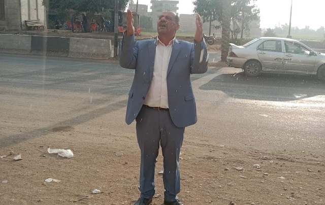 أمين مستقبل وطن بالزقازيق يبتهل لله لنصرة مصر وبيده علم الوطن