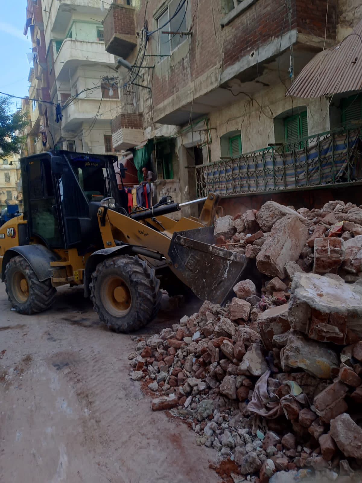 هدم عقار ايل للسقوط بالحجارى بنطاق حى الجمرك