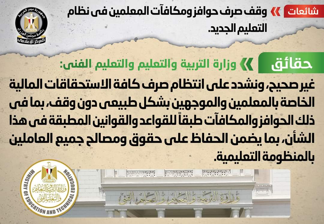 الوزراء يكشف حقيقة وقف صرف حوافز ومكافآت المعلمين في نظام التعليم الجديد