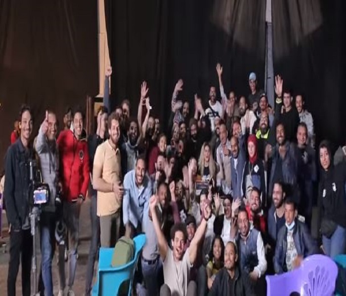 أسرة "بين السما والأرض" تحتفل بانتهاء التصوير