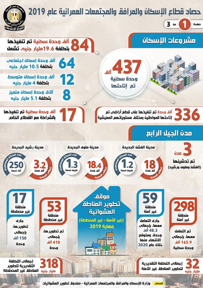 بالإنفوجراف... حصاد قطاع الإسكان والمرافق والمجتمعات العمرانية في 2019