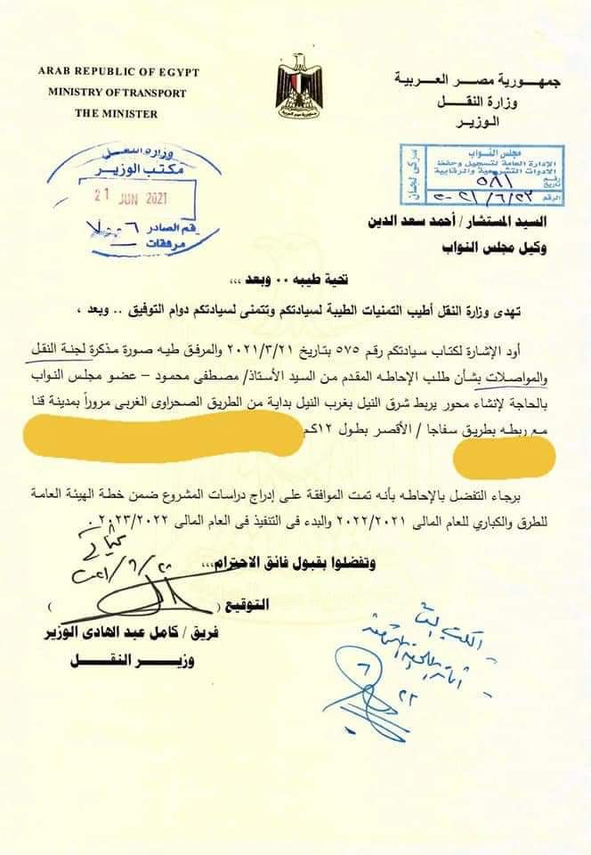 وزارة النقل توافق على طلب نواب الصعيد بإنشاء محورعرضى بمدينة قنا