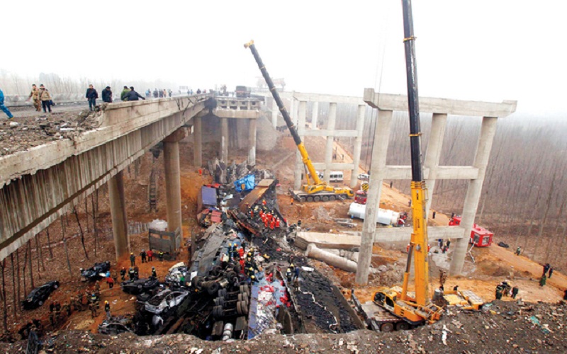 مصرع 3 أشخاص وإصابة 4 جراء انهيار جزئي لجسر في وسط الصين