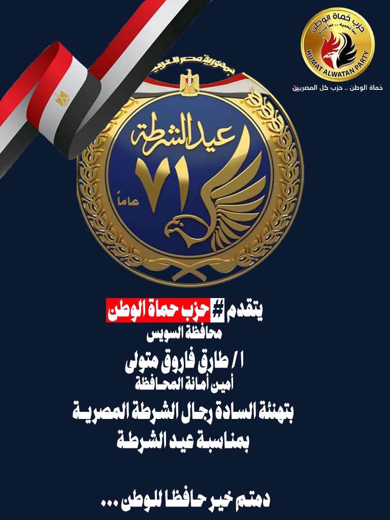 حماة الوطن بالسويس يهنيء رجال الداخلية في عيد الشرطة