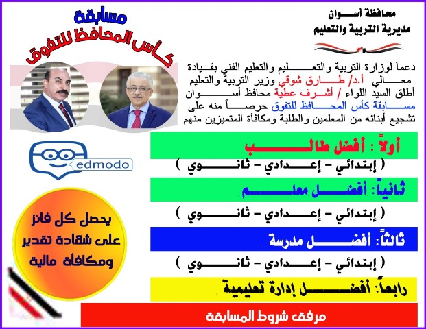 محافظ أسوان يطلق مسابقة كأس التفوق لأفضل طالب ومعلم ومدرسة وإدارة تعليمية