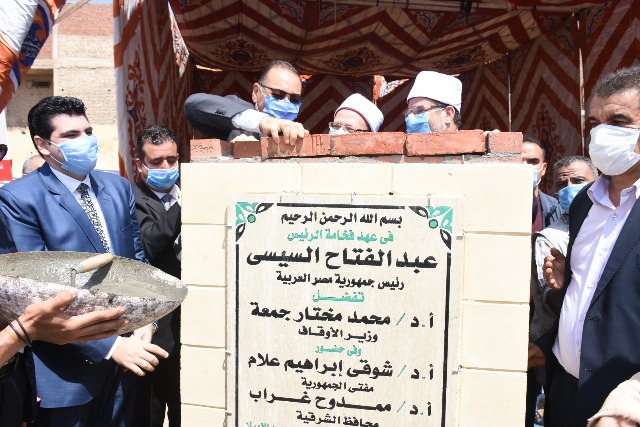 وزير الأوقاف ومفتى الجمهورية ومحافظ الشرقية يضعون حجر الأساس لمسجد ودار مناسبات.صور