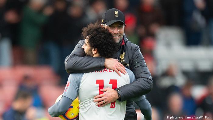 صور .. كيف استقبل يورجن كلوب صلاح عقب الفوز على ايفرتون