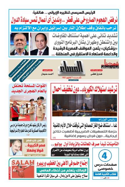 عدد "المساء" اليوم الأحد 29 من يونيو عام 2025