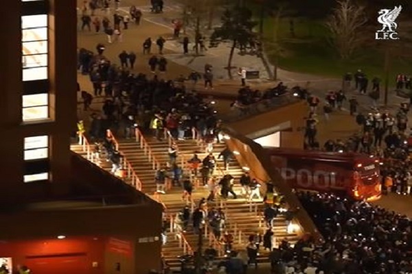شاهد .. وصول حافلة ليفربول لملعب آنفيلد لمواجهة ريال مدريد