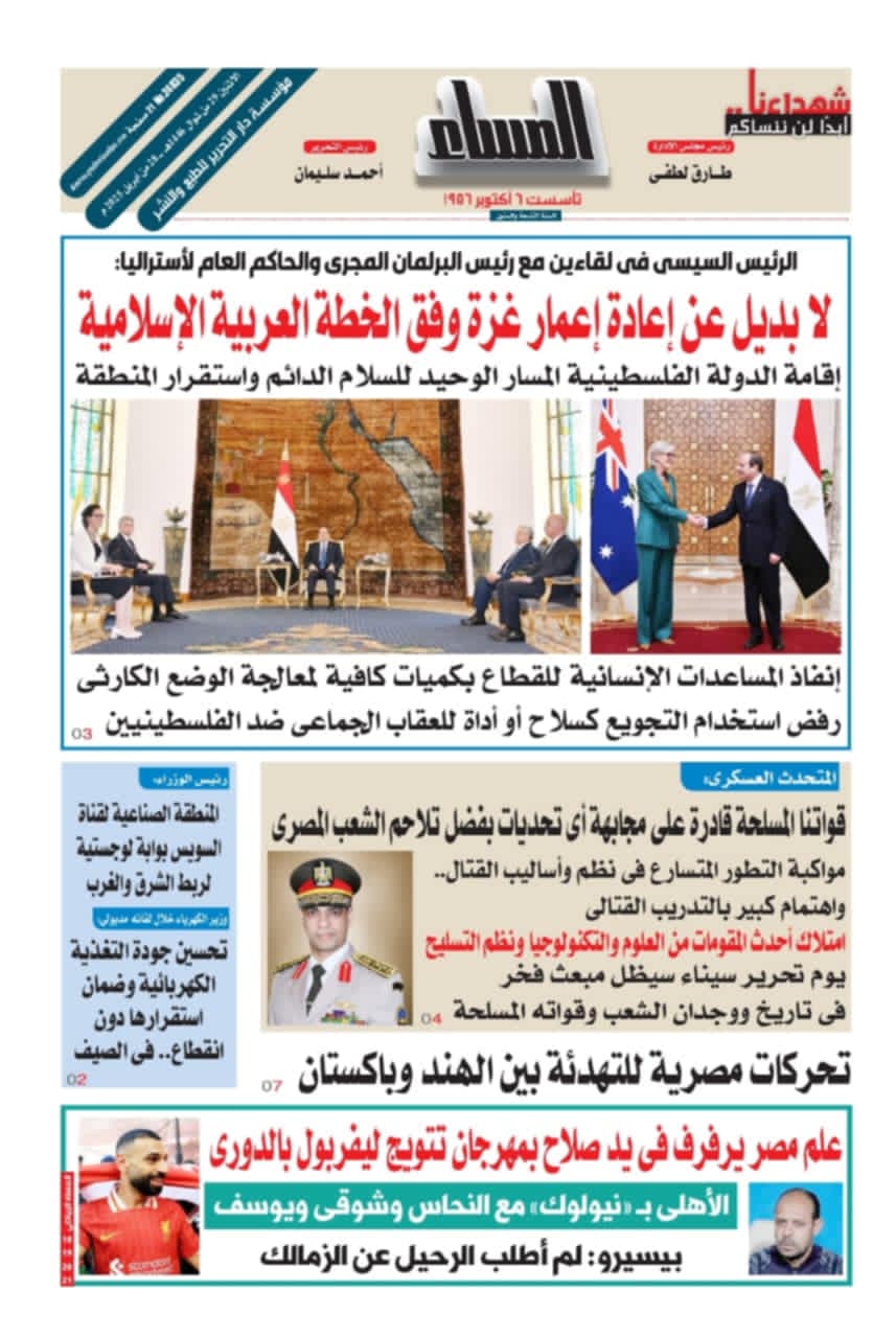تقرأ في عدد المساء اليوم الإثنين ٢٨ أبريل ٢٠٢٥