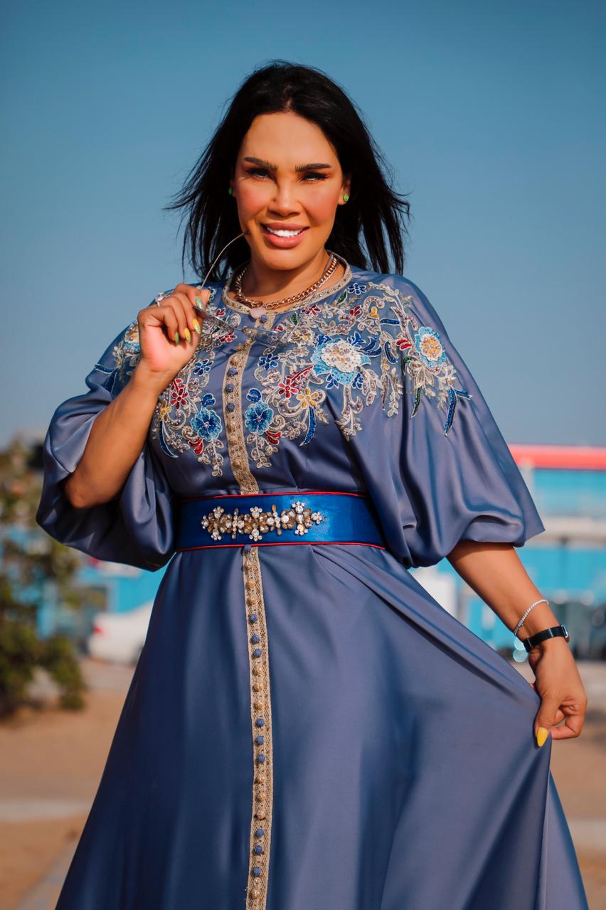 مى عز الدين تشارك جمهورها بزى الملكات الفرعونى