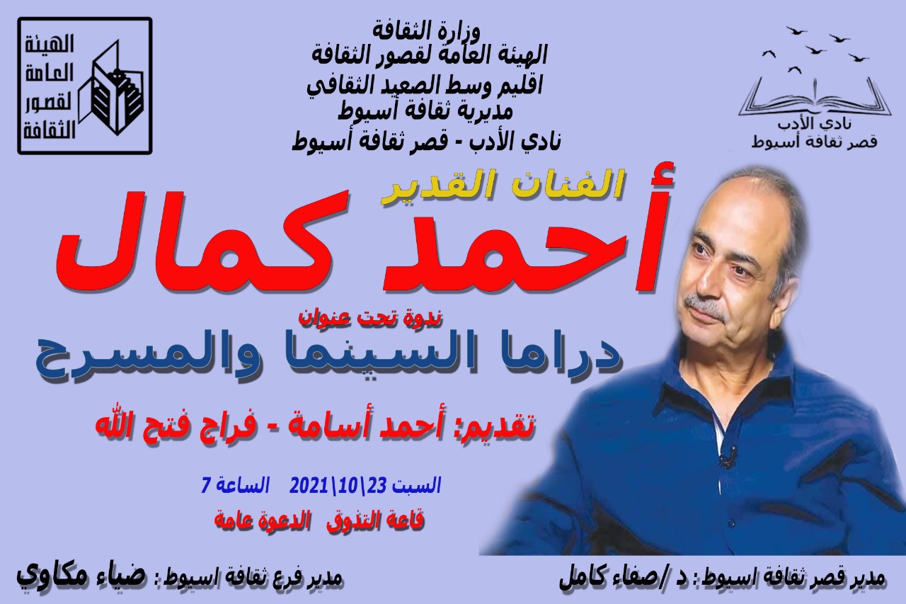 الفنان أحمد كمال متحدثًا عن "دراما السينما والمسرح" بنادي أدب أسيوط