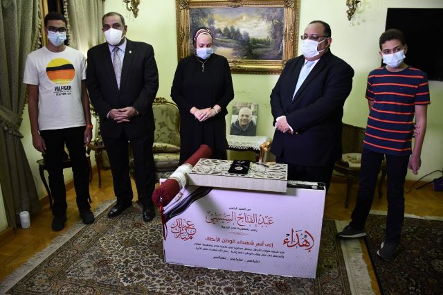 رئيس جامعة حلوان يزور أسرة الشهيد عمرو من القطاع الطبى لتقديم هدية الرئيس.. بالصور