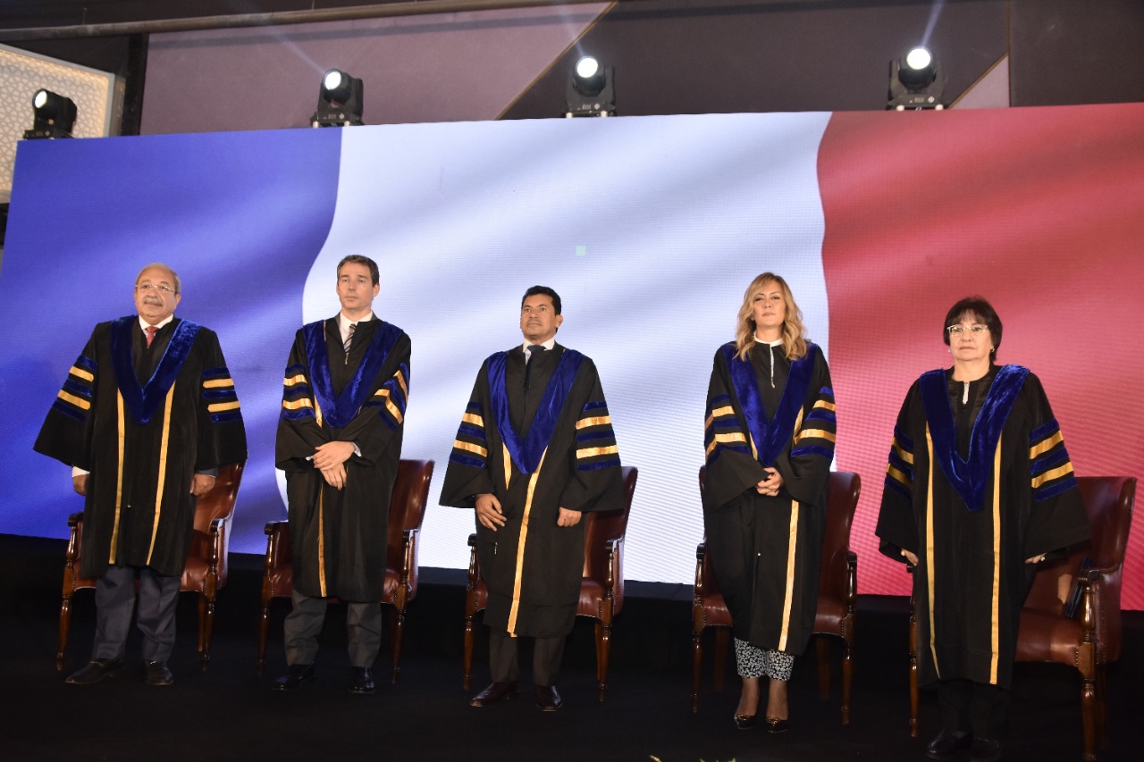 تكريم أشرف صبحى ورشا راغب فى حفل تخرج بجامعة إسلسكا مصر