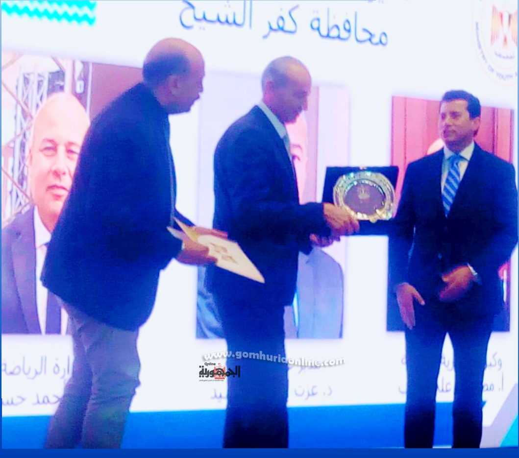 الدكتور أشرف صبحى يكرم وكيل وزارة الشباب والرياضة بكفر الشيخ فى حفل ختام الأنشطة الرياضية
