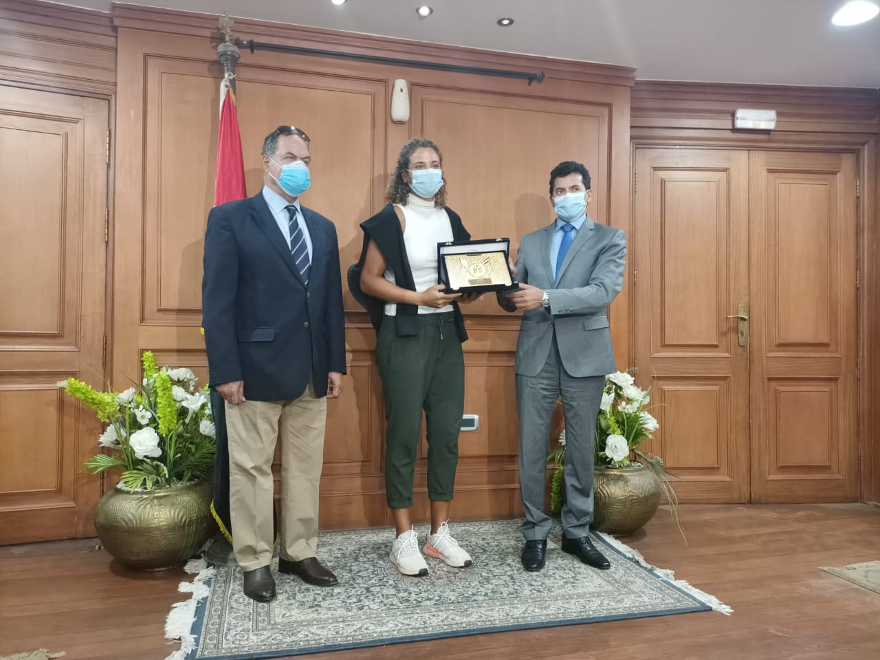 أشرف صبحى يهدى ميار شريف ومحمد صفوت درع وزارة الرياضة