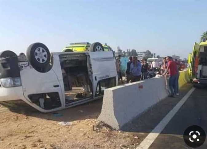 مصرع وإصابة 12جراء إنقلاب سيارة أعلى الطريق الدائرى فى القليوبية.. بالصور