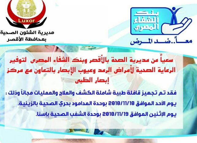 قافلة طبية لعلاج أمراض الرمد بقريتين بالأقصر