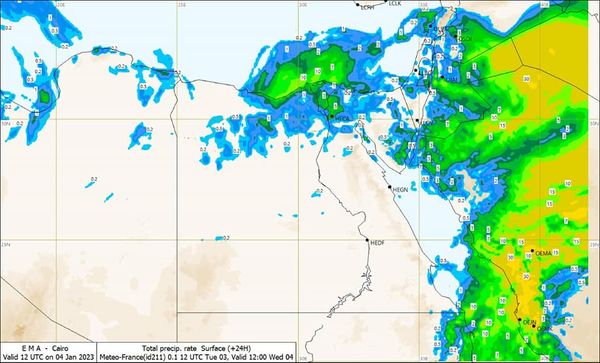 الارصاد : سقوط أمطار غزيرة مساءا على شمال سيناء والوجه البحرى