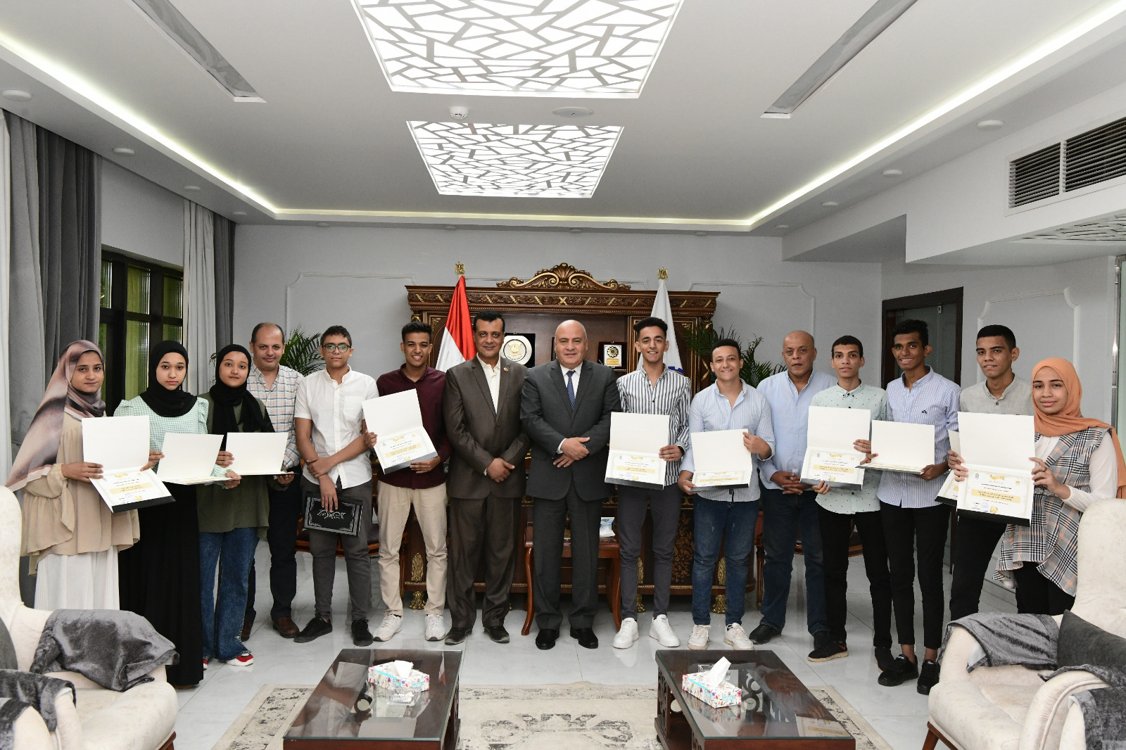 المحافظ يهنئ أوائل الثانوية العامة بالاسماعيلية