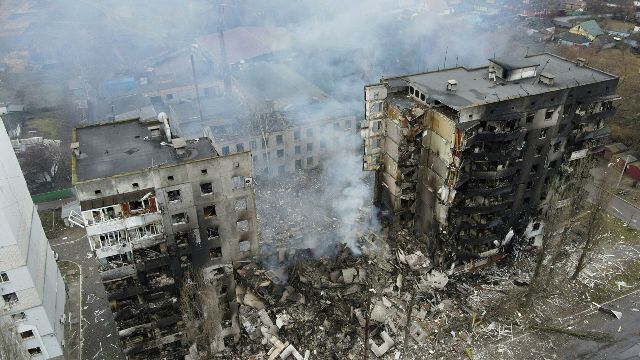 سقوط قذيفة على مبنى من 9 طوابق في حي أوبولون بكييف الأوكرانية