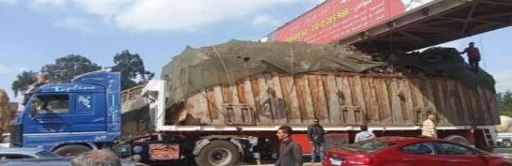 اصطدام سيارة نقل بالحاجز الحديدى الخاص بكوبري إمبابة