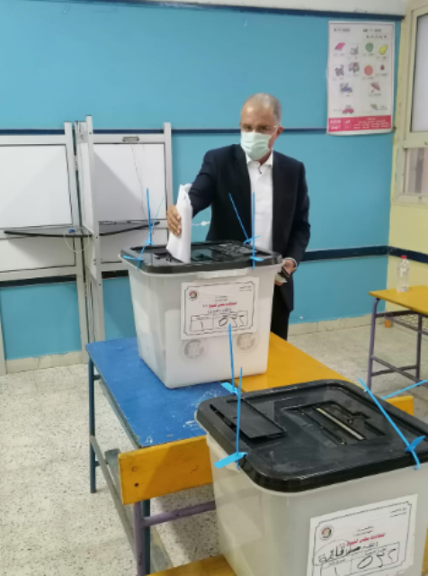 رئيس اتحاد الصناعات المصرية يدلى بصوته في لجنته بمدرسة القرية السياحية الأولى