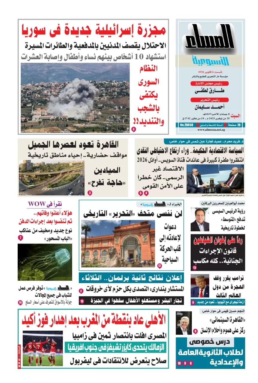 عدد المساء الأسبوعية اليوم السبت 29 نوفمبر
