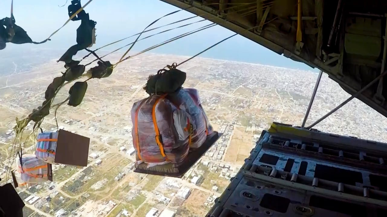القوات الجوية تسقط أطنان من المساعدات الإنسانية والإغاثية على شمال قطاع غزة خلال عيد الفطر