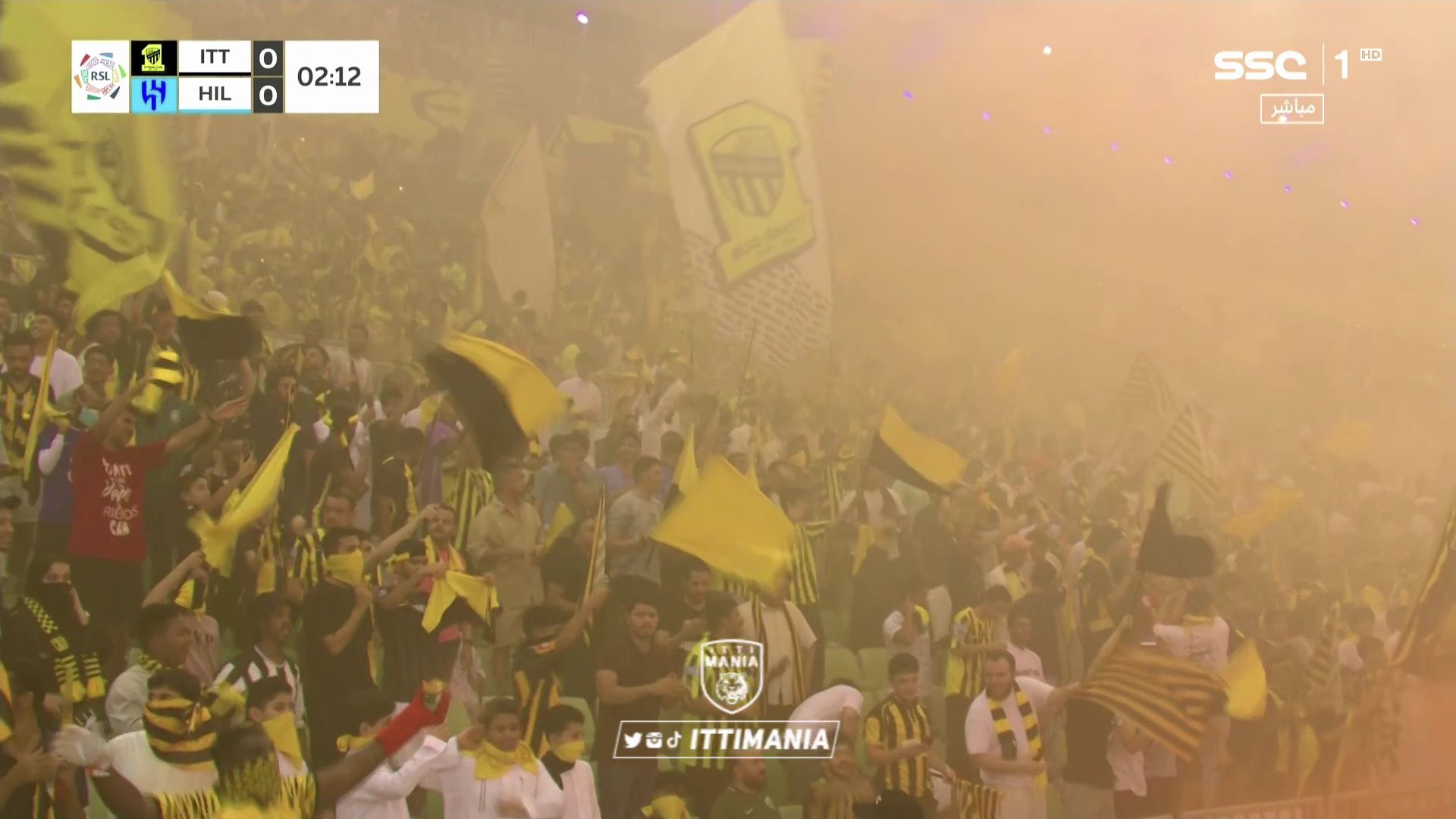 شاهد..حكم مواجهة الاتحاد والهلال يطلب ايقاف المباراة بسبب الدخان