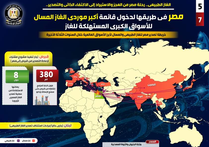 إنفوجراف الغاز الطبيعي.. رحلة مصر من العجز والاستيراد إلى الاكتفاء الذاتي والتصدير