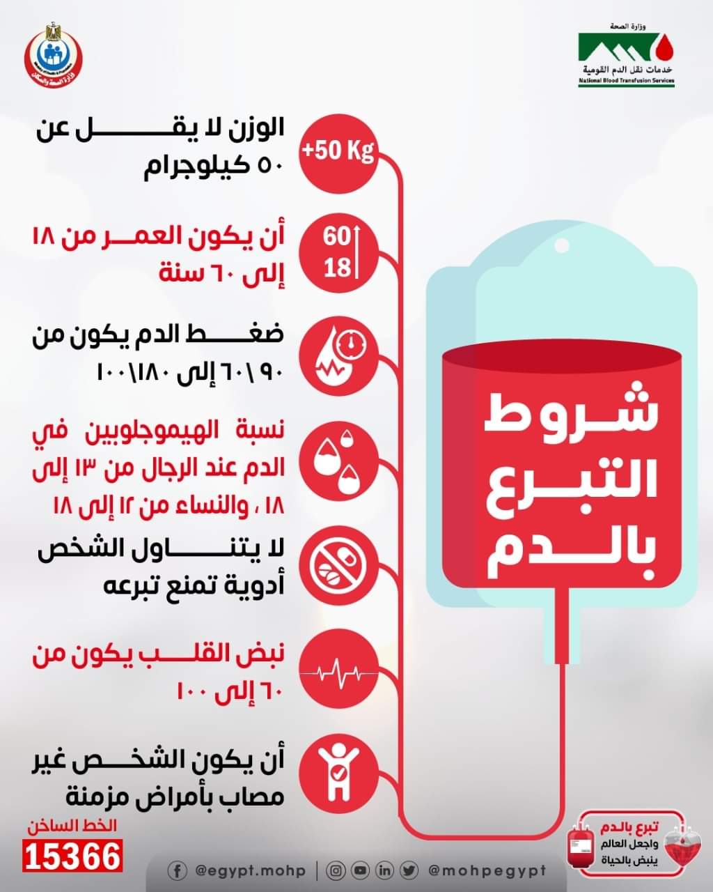 باستثناء الامراض المزمنة .. ٧ شروط عند التبرع بالدم ..انفوجراف
