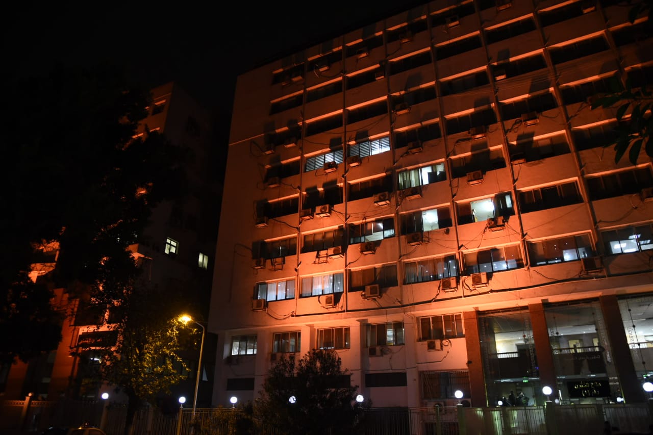 جامعة عين شمس تضئ باللون البرتقالي احتفالاً بيوم سلامة المريض والأطقم الطبية..صور